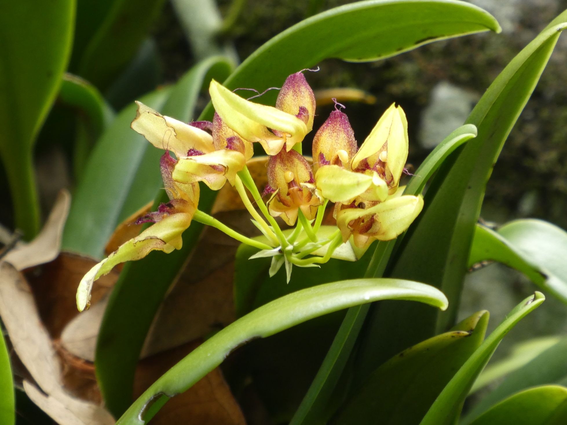 = Bulbophyllum longiflorum (ci-dessous) Photo de J. Vinet