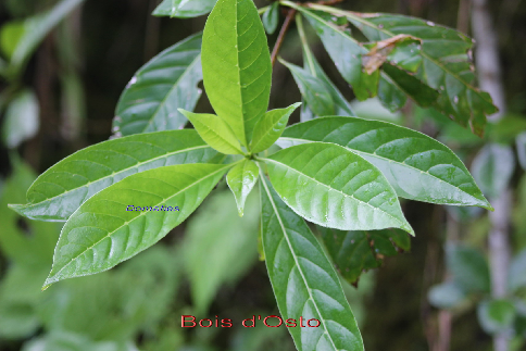Feuilles : Simples, de forme et de taille assez variable, en général verticillées par 3 et possèdent des domaties à l’aisselle des nervures secondaires. Limbe obovale à elliptique, arrondi à courtement mucroné au sommet, cunéiforme à la base.
