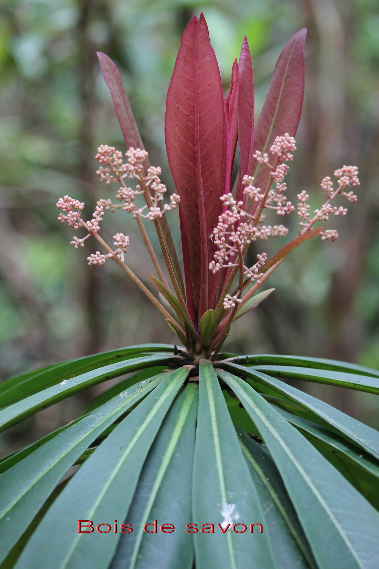 - Badula borbonica A. DC. var. borbonica se trouve entre 700 et 1300 m d’altitude, la tige sous le bouquet des feuilles mesure jusqu'à 2 cm de diamètre, les feuilles les plus longues mesurent 30 cm.
