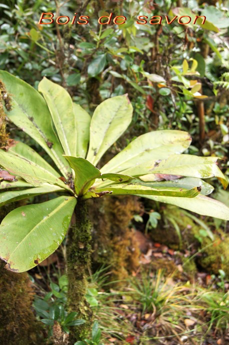 - Badula borbonica A. DC. var. macrophylla (Cordem.) Coode se trouve dans les forêts humides entre 1500 et 2000 m d'altitude, la tige sous le bouquet de feuilles mesure de 3 à 5 cm de diamètre, les feuilles les plus longues mesurent 40 à 50 cm.