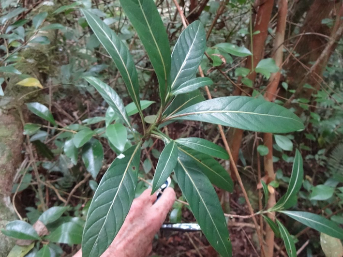 arbrisseau à feuilles opposées* à domaties*, à fleurs blanches peu nombreuses et à fruits noircissant à maturité: ses fruits furent utilisés dans le temps, en période de pénurie, pour remplacer le Café. (Endém. Réu. Mau.)