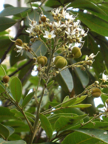 Fleurs blanches à 5 sépales et 4 pétales. Les fleurs mâles ont 6 étamines. Capsules [?] span class="tooltip" title="Capsules : Fruits secs, s'ouvrant à maturité, à une ou plusieurs loges." Noires, de 3 à mm sans arillode. Espèce endémique de La Réunion et de Maurice. Arbuste de zones plutôt sèches, encore assez commun. Groupe de succession : espèce pionnière (Espèce à croissance rapide, susceptibles de germer en conditions de lumière forte, habitant les milieux ouverts ou perturbés." Ornement, restauration écologique.