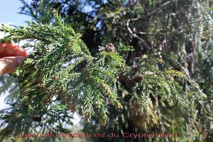 Cryptomeria japonica (L. f.) D. Don., le Cryptoméria appartient à la famille des Cupressaceae et au genre Cryptomeria D. Don, qui comprend que cette espèce. Le nom du genre Cryptomeria vient du grec kryptos, caché et meris, partie, allusion au fait que toutes les parties florales sont peu visibles.