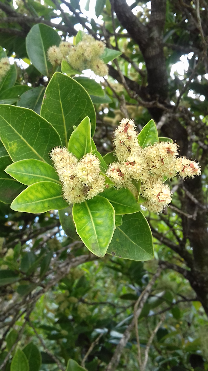 Arbuste ou arbre atteignant 30 m de hauteur; tronc en général très droit. Houppier au port en fuseau, très caractéristique. Blanche, peu épaisse, à lenticelles elliptiques. Alternes, simples, entières, pétiolées; Limbe ovale, ou obovale, arrondi au sommet, largement cunéiforme [?] Stipules petites, caduques ou +/- persistantes. Nervures principales rougeâtres. De 8 à 10 paires de nervures secondaires peu saillantes dessous; réticulation des nervilles assez dense et proéminente dessous. En grappes [?] Rare, généralement après un cyclone. Pièces florales persistantes donnant l’aspect de la fleur séchée. Une seule graine, le plus souvent dépourvue d’embryon. Cette espèce est endémique de la Réunion. On la trouve en forêt humide de 0 à 1100 m d’altitude. Groupe de succession : espèce pionnière [?] Ornement, restauration écologique, bois de construction, ébénisterie.