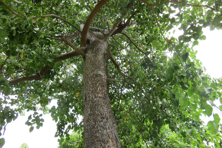 Son écorce grise est parsemée d’épines coniques. Les branches sont marquées par les cicatrices foliaires.