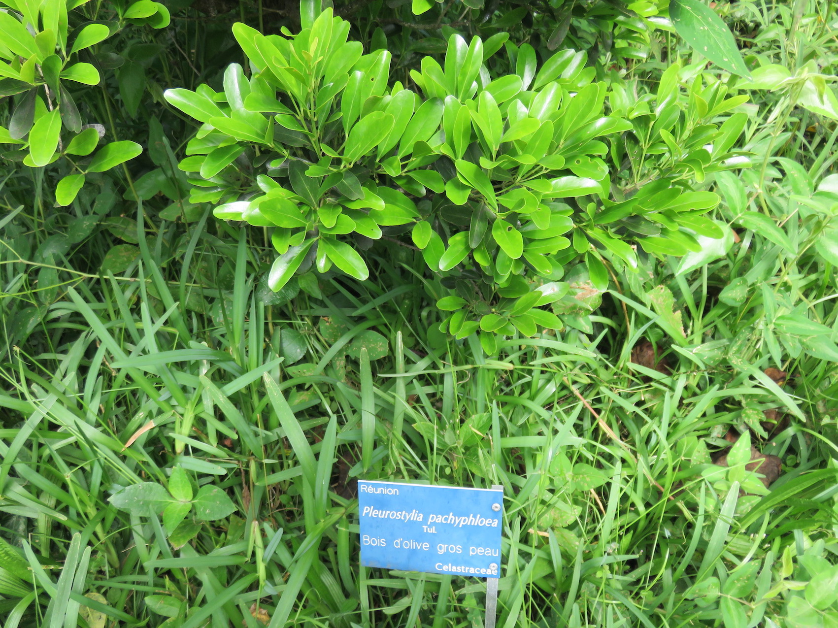 Pleurostylia pachyphloea Tul., est un arbuste endémique de La Réunion ou il pousse dans les endroits ensoleillés jusqu'à 1 100 mètres d'altitude environ. Bois d'olive grosse peau, Pleurostylia pachyphloea Tul est ainsi nommé à cause de son écorce épaisse.