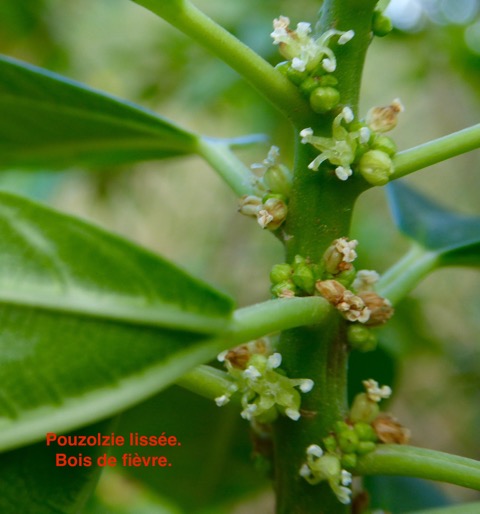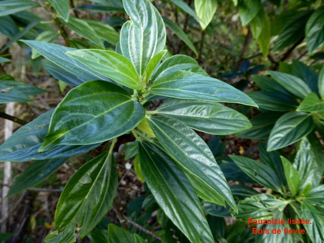 Pouzolzia laevigata, le bois de fièvre doit son nom réunionnais à la tisane issue de ses feuilles qui fait baisser la fièvre. Pour cette raison cette espèce est parfois cultivée dans les jardins créoles.
