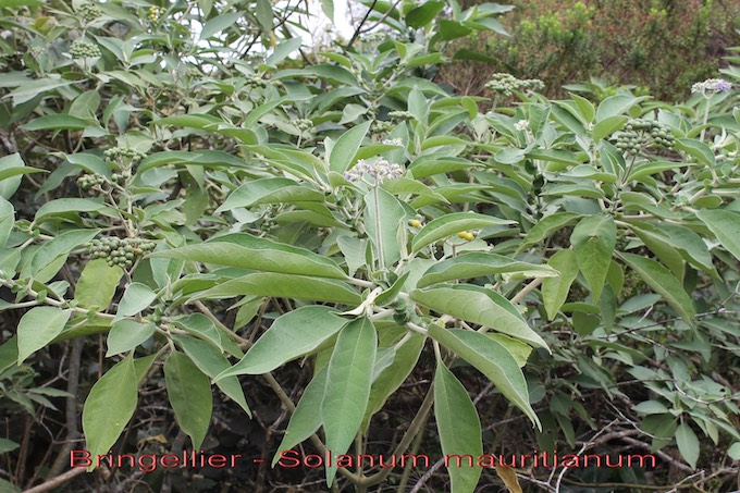 Bringellier marron ou tabac marron est un arbuste buissonnant, il atteint 2 mètres de hauteur, il peut parfois devenir un petit arbre de 5 mètres de hauteur notamment dans les forêts humides et primaires de La Réunion.