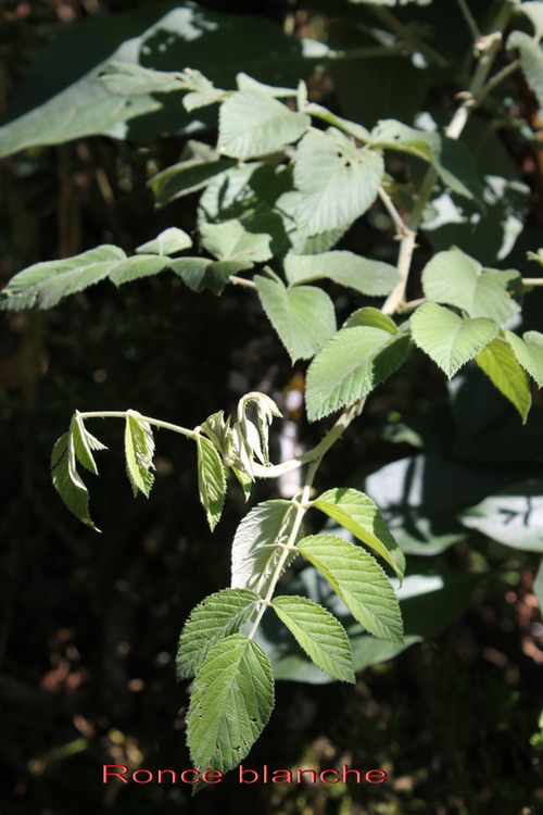 - Rubus apetalus Poir. var. apetalus. Espèce indigène, aux folioles et tiges tomenteuses.
