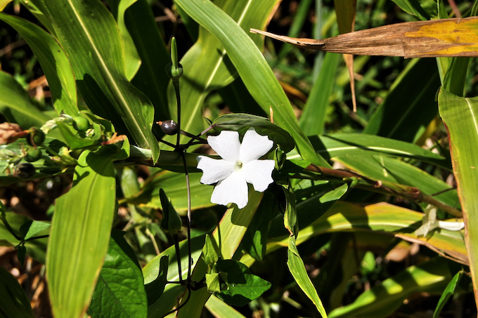 Thunbergia laevis de la famille des Acanthaceae est une espèce amphinaturalisée (assimilée indigène) à La Réunion. Cette liane porte deux noms vernaculaires dans l'île, la liane toupie et bec martin en référence à son fruit en forme de bec rappelant celui du Martin triste Acridotheres tristis