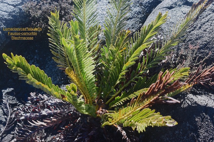 Blechnum tabulare, la fausse osmonde est une fougère assez commune à La Réunion, espèce à caractère pionnier elle est présente aux altitudes moyennes à très hautes, dans les endroits humides de formations arbustives ouvertes, elle colonise aussi les anciennes coulées de lave du Piton de la Fournaise.