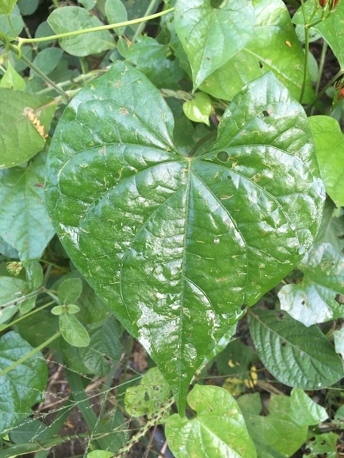 - Feuille en forme de coeur avec la présence de 4 ou 5 petites pointes sur sa périphèrie basse.