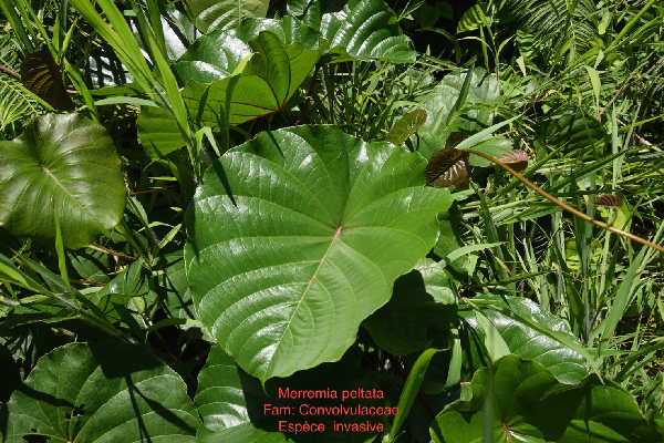 Merremia peltata (L.) Merr. - Ø - Convolvulaceae - B, M, Ro Réunion, Maurice, Rodrigues (lit. OI et Pacifique)