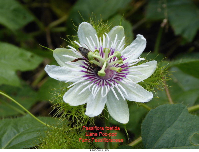 Passiflora foetida L., Poc-poc ou Passiflore poc-poc, appartient à la famille des Passifloraceae et au genre Passiflora L., qui comprend environ 530 espèces à distribution pantropicale.