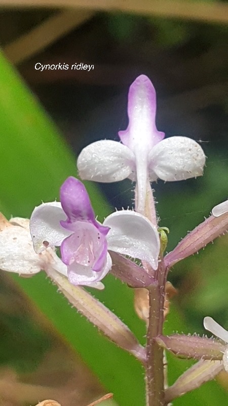 Cynorkis ridleyi est une orchidée présente dans les forêts humides de La Réunion de 700 à 2 000 m d'altitude. Elle a besoin d'une température tempérée et d'une bonne humidité ambiante. Cette orchidée est :