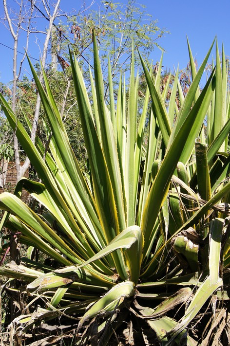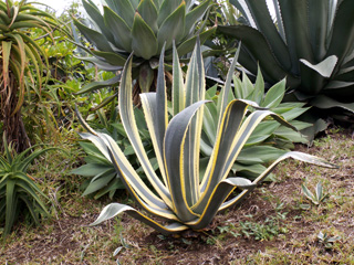 Agave americana L. subsp. americana var. picta (Salm-Dyck) A. Terracc est d'origine horticole. Cette imposante variété à feuilles marginées de jaune est l'un des agaves ornementaux les plus cultivés dans les régions tropicales du monde.