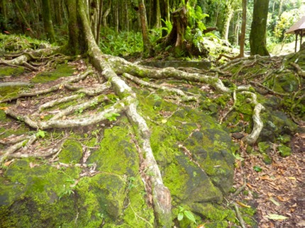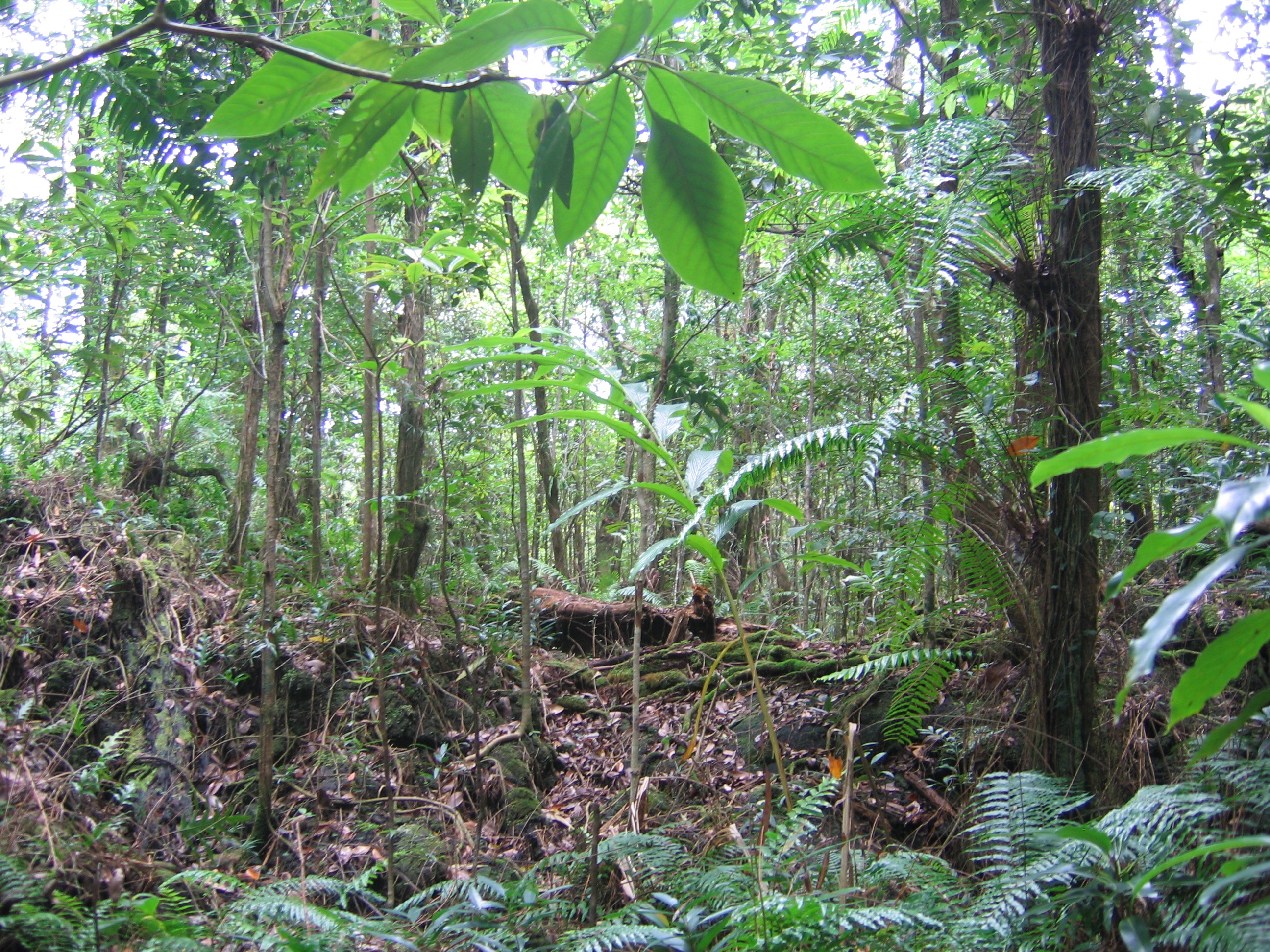Partout autour de nous au sol ou sur les troncs les Hymenophyllum, minuscules fougères, sont d'un grand intérêt pour les professeurs de ce que furent les sciences naturelles, à savoir que les membranes des feuilles n'ont qu'une couche de cellules, ce qui les rend prêtes au passage sous le microscope, sans préparation.