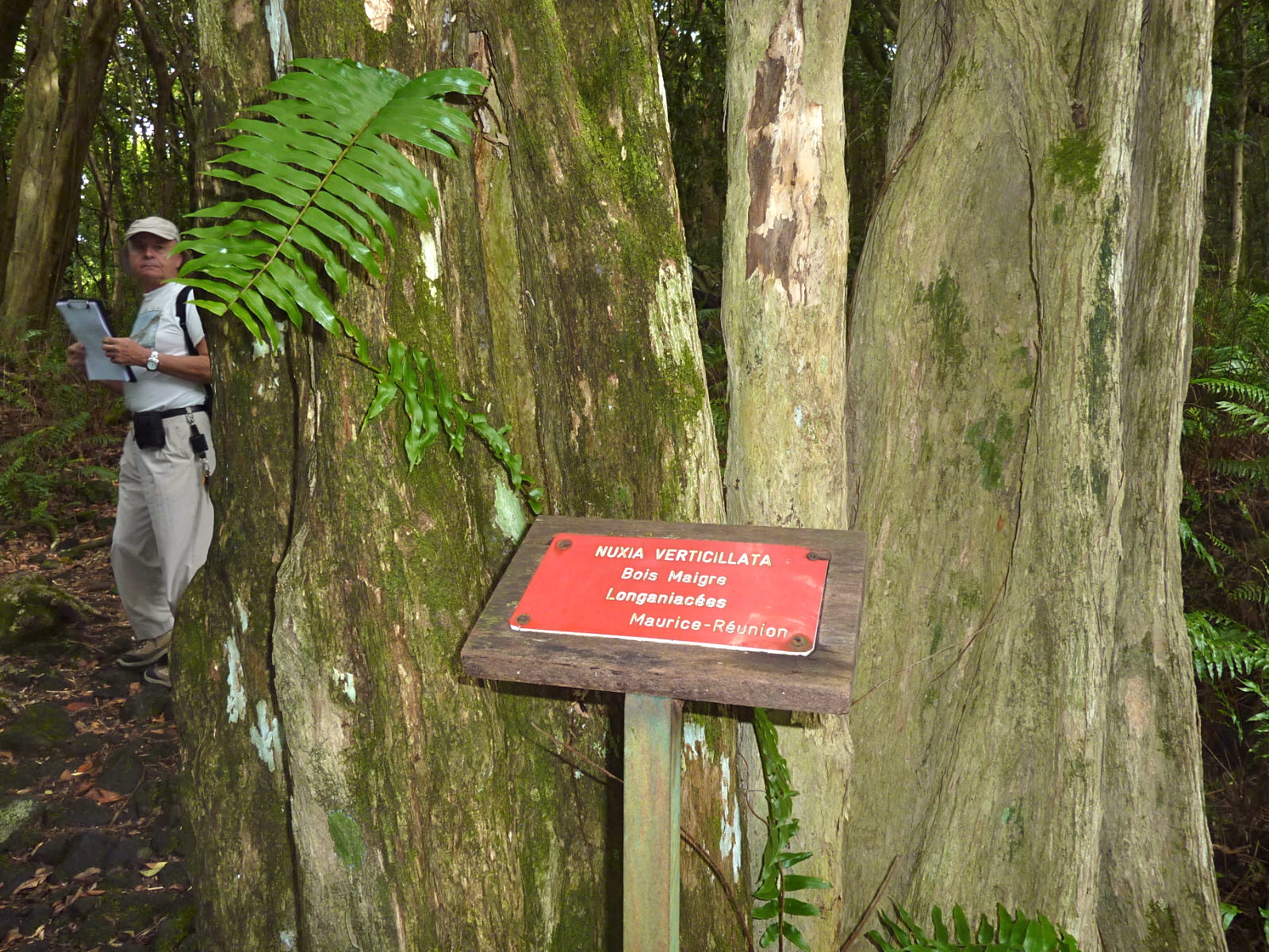 On entre dans la forêt de Mare Longue comme on entre dans une machine à remonter le temps avec cette bizarre impression de se retrouver aux origines de l'île. Sur l'exigu parking les oiseaux La Vierge volettent avant de disparaître pour revenir bientôt. La touffeur de l'air calme les esprits et invite à l'observation… Nicole CRESTEY nous indique d'ailleurs qu'il faut beaucoup d'attention pour mémoriser un maximum de noms sur un sentier pour lequel elle a compilé un tableau recensant plus de cent espèces. Forêt tropicale de basse altitude, dans un climat chaud (forêt de la série mégatherme hygrophile), elle n'est qu'un lambeau de la forêt initiale qui entourait toute l'île à l'exception de la forêt semi-sèche de la côte ouest sous le vent. Cette forêt originelle a disparu : son bois a été utilisé pour l’entretien des navires ou la construction de chaloupes, comme bois d'œuvre, bois de charpente, sans parler du bois de feu.