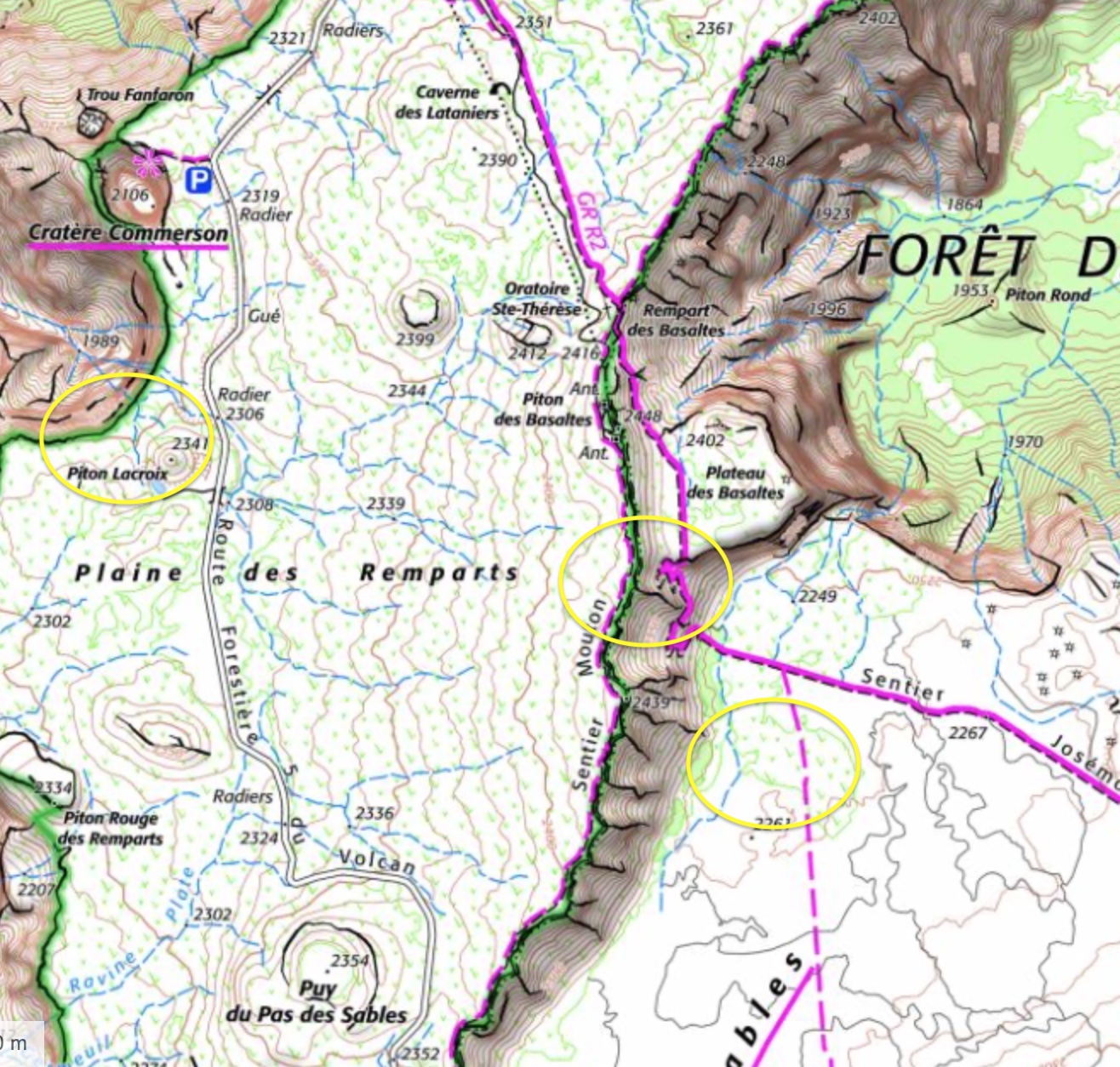 Plaine des sables, sentier oratoire Ste-Thérèse, ravine Piton Lacroix