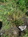 Plantago lanceolata/Petit plantain/PLANTAGINACEE/Exotique/ entouré de Chicorées pays (fleurs jaunes) Hypochaeris radicata/Chicorée-pays/ASTERACEE/Exotique/P1000680